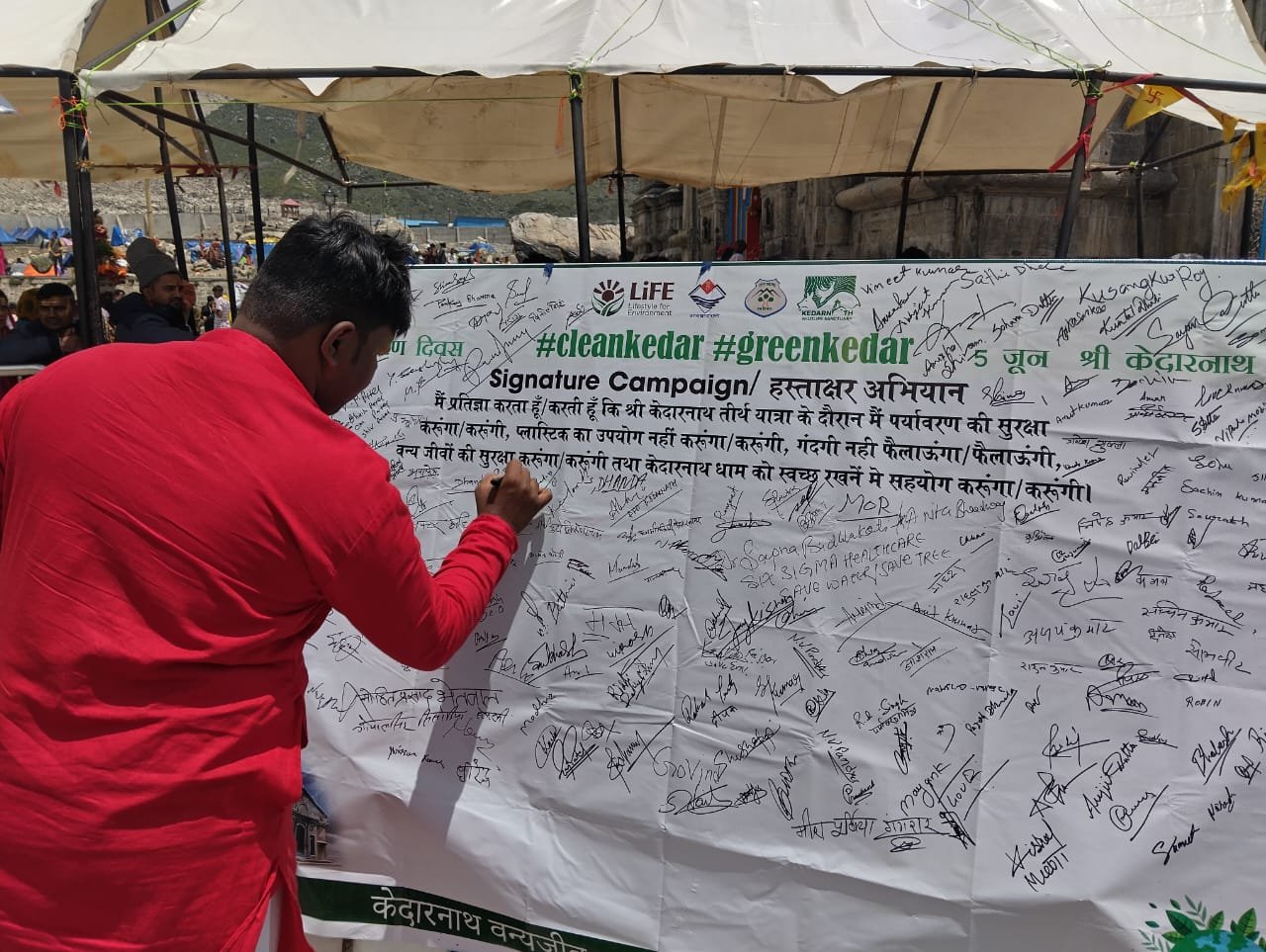 रुद्रप्रयाग : विश्व पर्यावरण दिवस के अवसर पर श्री केदारनाथ धाम में केदारनाथ वन्य जीव प्रभाग के द्वारा विश्व पर्यावरण दिवस मनाया गया। केदारनाथ धाम में मेरी लाईफ फॉर इन्वायरमैंट हेतु वृक्षारोपण, स्वच्छता अभियान, सेल्फी फार इन्वायरमैंट हस्ताक्षर अभियान चलाया गया।