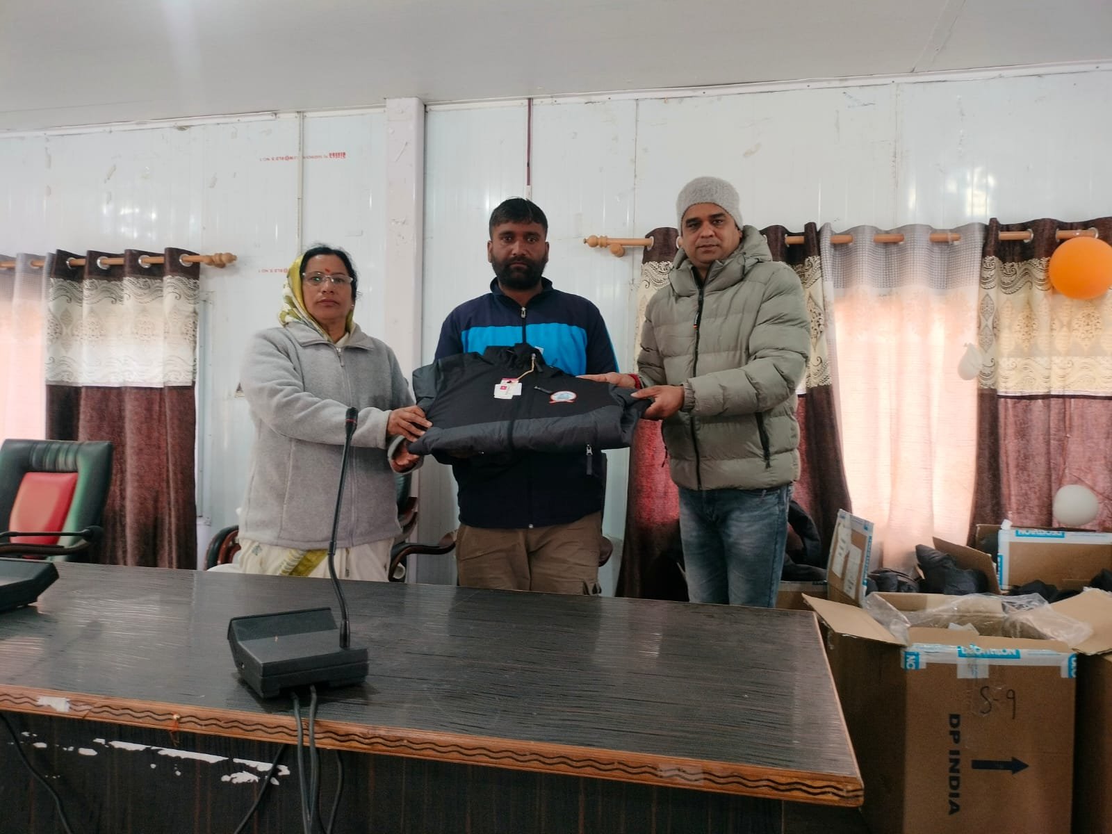 पर्यावरण मित्रों के स्वास्थ्य और सुरक्षा को प्राथमिकता देते हुए नगर पालिका अध्यक्ष श्रीमती देवेश्वरी शाह और अधिशासी अधिकारी सुनील पुरोहित ने एक महत्वपूर्ण कदम उठाया है। पालिका प्रशासन द्वारा लगभग 100 पर्यावरण मित्रों को विशेष तौर पर तैयार किए गए जैकेट वितरित किए गए हैं। ये जैकेट विशेष रूप से -10 डिग्री जैसी भीषण ठंड में भी शरीर को गर्म रखने और राहत पहुँचाने में सक्षम हैं। पालिका के इस कदम से उन कर्मचारियों को बड़ी राहत मिली है जो बर्फ के बीच पैदल रास्तों को साफ करने का चुनौतीपूर्ण कार्य कर रहे हैं।