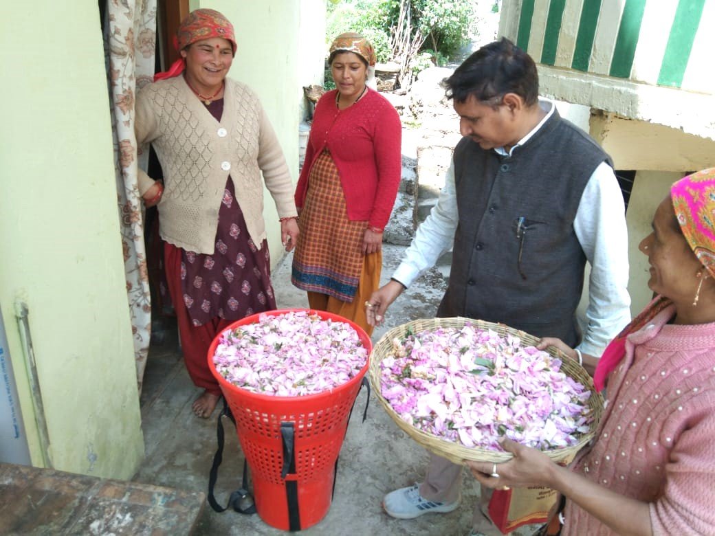 चमोली : सीमांत जनपद चमोली में डेमस्क रोज की खेती किसानों की आजीविका का अच्छा साधन बन रही है। डेमस्क रोज से तैयार गुलाब जल और तेल के विपणन से किसान को फायदा मिलने लगा है। मनरेगा के तहत जोशीमठ ब्लाक के ग्राम पंचायत द्वींगतपोण में 35 परिवारों को डेमस्क रोज उत्पादन से जोडा गया था। इस सीजन में यहां किसानों ने डेमस्क रोज से 400 लीटर से अधिक गुलाब जल और तेल तैयार कर अच्छी आय अर्जित की है। किसानों द्वारा चारधाम यात्रा मार्ग सहित स्वयं सहायता समूहों के माध्यम से गुलाब जल का विपणन किया जा रहा है। गुलाब जल हाथों हाथ बिक रहा है और इससे अच्छी आय मिलने से काश्तकार बेहद खुश है। काश्तकारों ने बताया कि परम्परागत खेती के साथ उन्होंने डेमस्क गुलाब की खेती को भी अपनाया है। गुलाब की खेती को जंगली जानवरों से भी कोई खतरा नहीं रहता है। इसके अलावा असिंचित बंजर भूमि पर भी आसानी से गुलाब की खेती करने से उनको काफी फायदा मिल रहा है। जिला विकास अधिकारी ने बताया कि जनपद में मनरेगा के तहत स्वयं सहायता समूहों को पुष्प वाटिका बनाने के लिए भी प्रेरित किया जा रहा है।