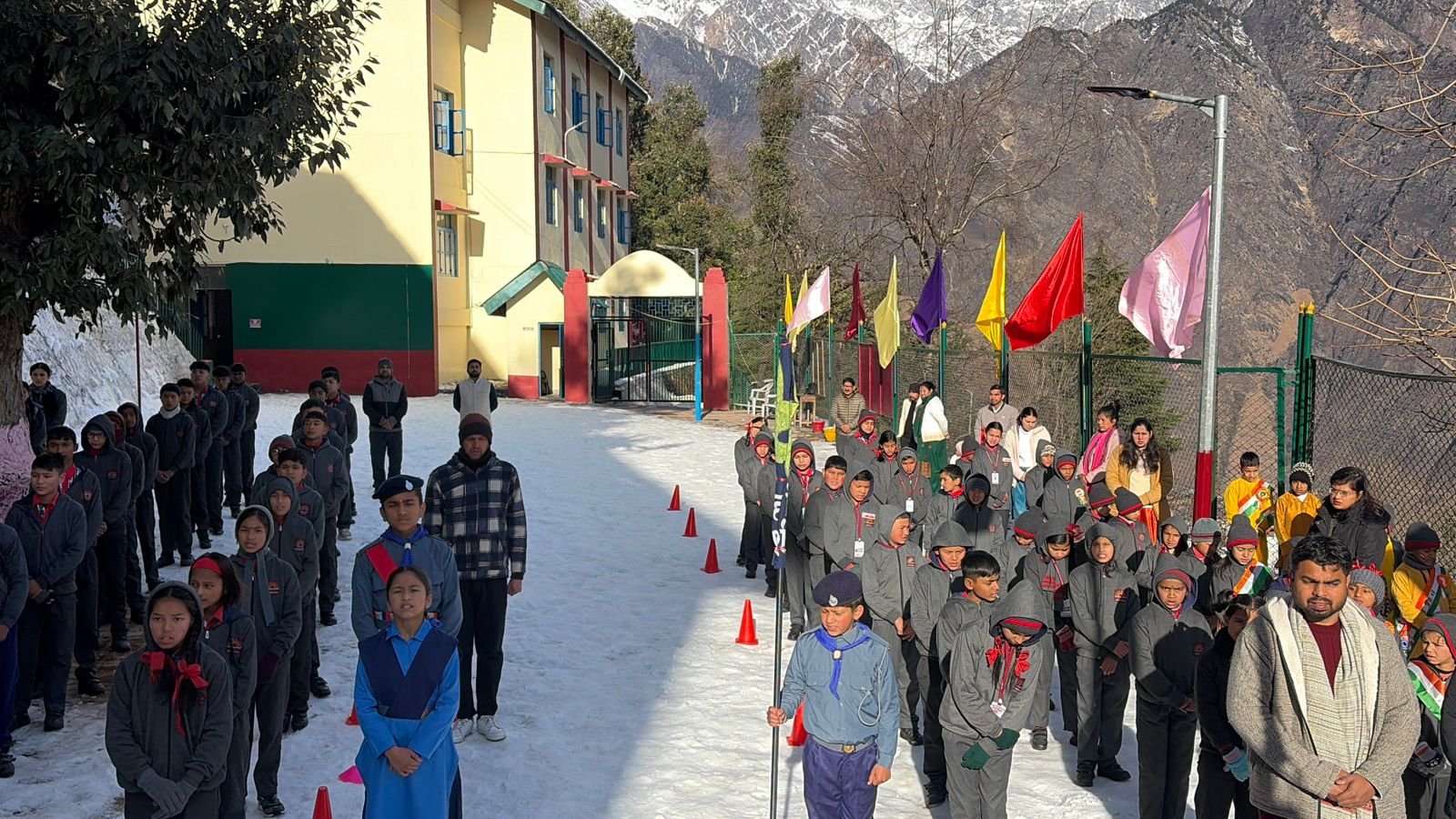 - ज्योतिर्मठ। सीमांत क्षेत्र ज्योर्तिमठ के पीएम श्री केंद्रीय विद्यालय आईटीबीपी में 77वां गणतंत्र दिवस देशभक्ति और भारी उत्साह के साथ मनाया गया। हिमशिखरों की गोद में चल रही बर्फीली हवाओं के बीच विद्यालय का प्रांगण राष्ट्रभक्ति के नारों से गुंजायमान रहा। समारोह का विधिवत शुभारंभ विद्यालय के प्राचार्य अशोक कुमार पाठक द्वारा स्काउट्स एवं गाइड्स की गरिमामयी अगुवाई में ध्वजारोहण कर किया गया। इस अवसर पर नन्हे छात्र-छात्राओं ने देशभक्ति की थीम पर आधारित रंगारंग सांस्कृतिक कार्यक्रमों से सबका मन मोह लिया। विद्यार्थियों ने राष्ट्रभक्ति गीतों, पारंपरिक लोक नृत्यों और योग की हैरतअंगेज प्रस्तुतियों के जरिए भारत की सांस्कृतिक विविधता और शक्ति का प्रदर्शन किया।