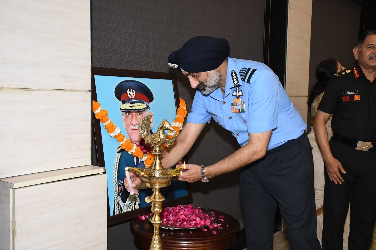 मुख्य अतिथि थलसेना प्रमुख जनरल उपेंद्र द्विवेदी, विशिष्ट अतिथि वायु सेना प्रमुख एयर चीफ मार्शल एपी सिंह, पूर्व वायुसेना प्रमुख आरकेएस भदौरिया और जनरल बिपिन रावत की सुपुत्री तारिणी रावत ने दीप प्रज्ज्वलित कर कार्यक्रम का शुभारम्भ किया। सभी ने सीडीएस जनरल बिपिन रावत को श्रद्धांजलि अर्पित की।