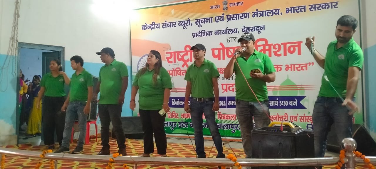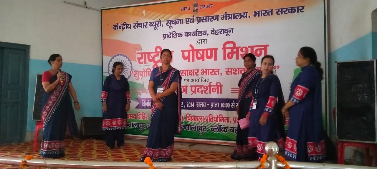 हरिद्वार : भारत सरकार के सूचना प्रसारण मंत्रालय केंद्रीय संचार ब्यूरो शाखा देहरादून के माध्यम से राष्ट्रीय पोषण मिशन के तहत देशभर में मनाई जा रहे पोषण माह के अंतर्गत ज्वालापुर इंटर कॉलेज के प्रांगण में पोषण दृश्य चित्र प्रदर्शनी का आयोजन किया जा रहा था जिसका शुक्रवार को रंगारंग सांस्कृतिक कार्यक्रमों के साथ समापन हुआ सामापन। इस अवसर पर ब्लॉक बहादराबाद के ग्राम अजीतपुर के प्रधान प्रखर कश्यप  मुख्य अतिथि, शाहपुर शीतला खेड़ा के ग्राम प्रधान दीपक सैनी, जिया पोता के ग्राम प्रधान कृष्ण पाल विशिष्ट अतिथि के रूप में उपस्थित रहे ।
