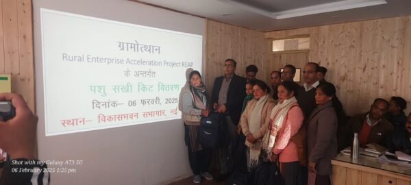 टिहरी : मुख्य विकास अधिकारी डॉ. अभिषेक त्रिपाठी ने गुरूवार को विकास भवन सभागार नई टिहरी में आयोजित कार्यकम में ग्रामोत्थान रीप परियोजना के अन्तर्गत प्रशिक्षित पशु सखियों को किट वितरित की। जिला परियोजना प्रबन्धक रीप ने बताया कि जनपद में परियोजना के अन्तर्गत 28 प्रशिक्षित पशु सखियां तैयार की जा चुकी हैं, जो कि पशुपालन विभाग के पशु चिकित्साधिकारियों के देख-रेख में पशुओं के प्राथमिक उपचार, पशुचारा प्रबन्धन, पशु स्वास्थ्य प्रबन्धन, पशु टीकाकरण, पशु कान टैगिंग आदि के साथ ही पशु बीमा, पशु गणना तथा मिल्क रिकार्डिंग आदि की सेवाएं भी प्रदान की जायेगी। प्रदान की जा रही सेवाओं हेतु पशु सखियों को परियोजना के माध्यम से न्यूनतम बारह माह की अवधि के लिए रूपये 2500.00 (दो हजार पांच सौ प्रतिमाह) का सहयोग स्टाइपण्ड के रूप में प्रदान किया जायेगा।