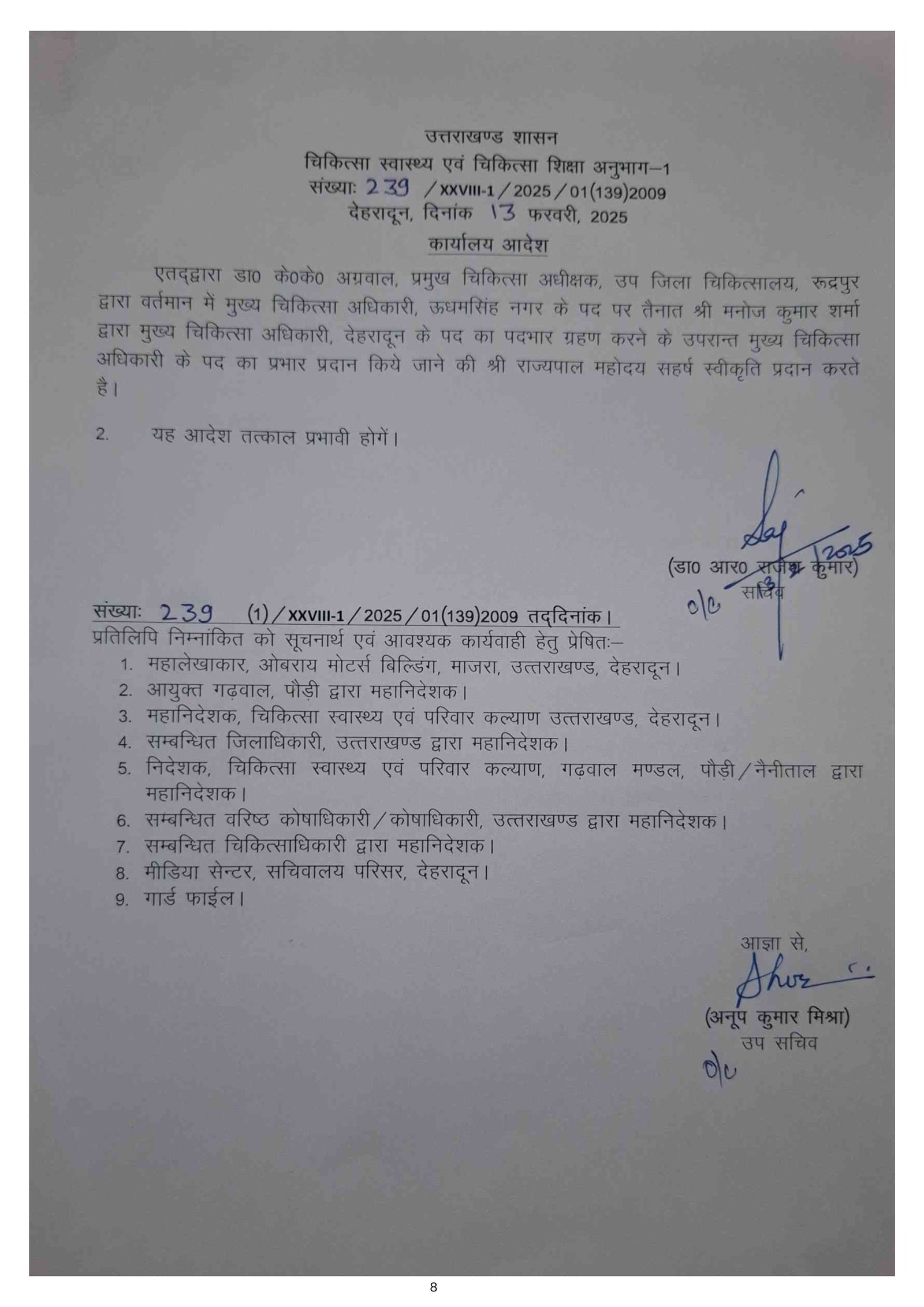 राज्य में कई जिलों के बदले गए CMO-CMS, सचिव स्वास्थ्य डॉ आर राजेश कुमार ने कहा – प्रदेश में स्वास्थ्य सेवाओं को और अधिक प्रभावी एवं सुचारू बनाने के लिए हुए बदलाव