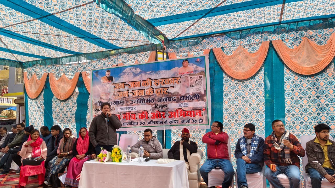 - ज्योतिर्मठ। मुख्यमंत्री पुष्कर सिंह धामी की ‘सरकार जनता के द्वार’ पहल के तहत शुक्रवार को विकासखंड ज्योतिर्मठ की न्याय पंचायत पाण्डुकेश्वर में एक विशाल बहुउद्देशीय शिविर का आयोजन किया गया। उपजिलाधिकारी चंद्रशेखर वशिष्ठ की अध्यक्षता और दर्जा प्राप्त राज्य मंत्री रामचंद्र गौड़ की उपस्थिति में आयोजित इस शिविर में कुल 339 ग्रामीणों ने सरकार की विभिन्न जनकल्याणकारी योजनाओं का सीधा लाभ उठाया। शिविर के दौरान राजस्व, स्वास्थ्य, समाज कल्याण, कृषि और विद्युत सहित दर्जनों विभागों ने अपने स्टाल लगाकर लोगों की समस्याओं को सुना। कुल प्राप्त 18 शिकायतों में से 11 का मौके पर ही निस्तारण कर दिया गया, जबकि शेष 07 शिकायतों के लिए संबंधित अधिकारियों को गुणवत्तापरक समाधान के कड़े निर्देश दिए गए। इस अवसर पर एसडीएम ने कहा कि प्रशासन का लक्ष्य अंतिम छोर पर बैठे व्यक्ति तक विकास योजनाओं को पहुँचाना है। शिविर में भारी संख्या में उमड़े ग्रामीणों को स्वास्थ्य विभाग द्वारा चिकित्सा परामर्श और बाल विकास विभाग द्वारा आवश्यक जानकारियां भी प्रदान की गईं।