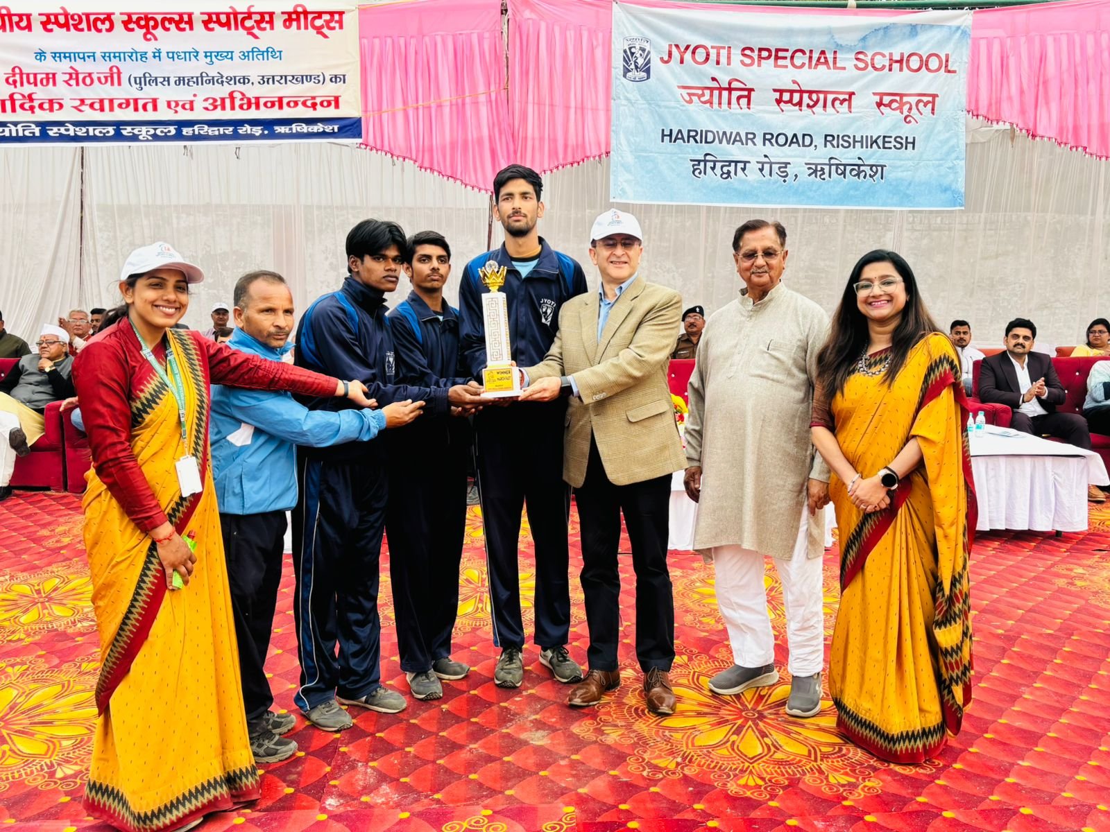 ऋषिकेश : उत्तराखंड पुलिस महानिदेशक (DGP) दीपम सेठ  ने आज स्पेशल बच्चों के प्रोत्साहन हेतु ज्योति स्पेशल स्कूल, ऋषिकेश द्वारा आयोजित “स्पेशल स्कूल्स स्पोर्ट्स मीट-2025” के समापन समारोह में बतौर मुख्य अतिथि प्रतिभाग किया। इस दो दिवसीय अंतरराज्यीय प्रतियोगिता में विभिन्न प्रदेशों के 13 विशेष विद्यालयों के बच्चों ने भाग लिया। पुलिस महानिदेशक ने विभिन्न खेल प्रतियोगिताओं में उत्कृष्ट प्रदर्शन करने वाले बच्चों को मेडल पहनाकर व ट्रॉफी देकर सम्मानित किया।