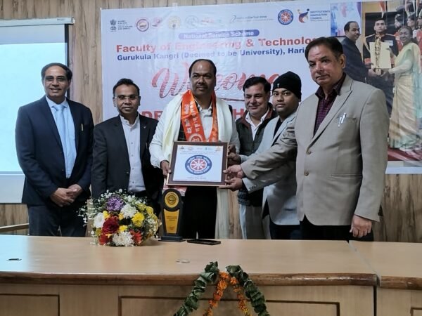हरिद्वार : गुरुकुल कांगड़ी विश्वविद्यालय के राष्ट्रीय सेवा योजना द्वारा इंजीनियरिंग संकाय में आयोजित एक गरिमामयी समारोह में राष्ट्रपति पुरस्कार से सम्मानित डॉ. पियूष जैन का भव्य स्वागत किया गया। अभियांत्रिकी एवं प्रौद्योगिकी संकाय अध्यक्ष प्रो. सुनील पंवार ने डॉ. पियूष जैन का स्वागत किया , उन्होंने कहा कि राष्ट्रीय खेल प्रोत्साहन पुरस्कार (2024) उनकी कठिन मेहनत और खेलों के प्रति समर्पण का प्रमाण है।