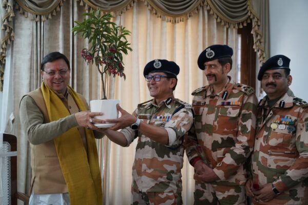 देहरादून : नववर्ष पर मुख्यमंत्री आवास में मुख्यमंत्री पुष्कर सिंह धामी से महानिरीक्षक आईटीबीपी संजय गुंज्याल एवं आईटीबीपी के अन्य वरिष्ठ अधिकारियों ने मुलाकात कर नव वर्ष की बधाई दी। मुलाकात के दौरान महानिरीक्षक आईटीबीपी ने समसामयिक विषयों पर चर्चा करते हुए हाल ही में सब्जियां/मांस व दूरस्थ वाइब्रेंट विलेज हेतु टेली मेडिसिन पहुंचाने हेतु उत्तराखण्ड सरकार के साथ हुए एम.ओ.यू. के बारे में जानकारी साझा की। मुख्यमंत्री ने प्रदेश में सुरक्षा/पर्यटन/वाइब्रेंट विलेज मिशन में आईटीबीपी के प्रयासों पर प्रसन्नता जताते हुए आगामी राष्ट्रीय खेलों में भी फोर्स की सहभागिता पर जोर देते हुए कहा कि शहीदों कि शहीदों के सम्मान लंबित कार्यो को तुरंत पूरा किया जायेगा।