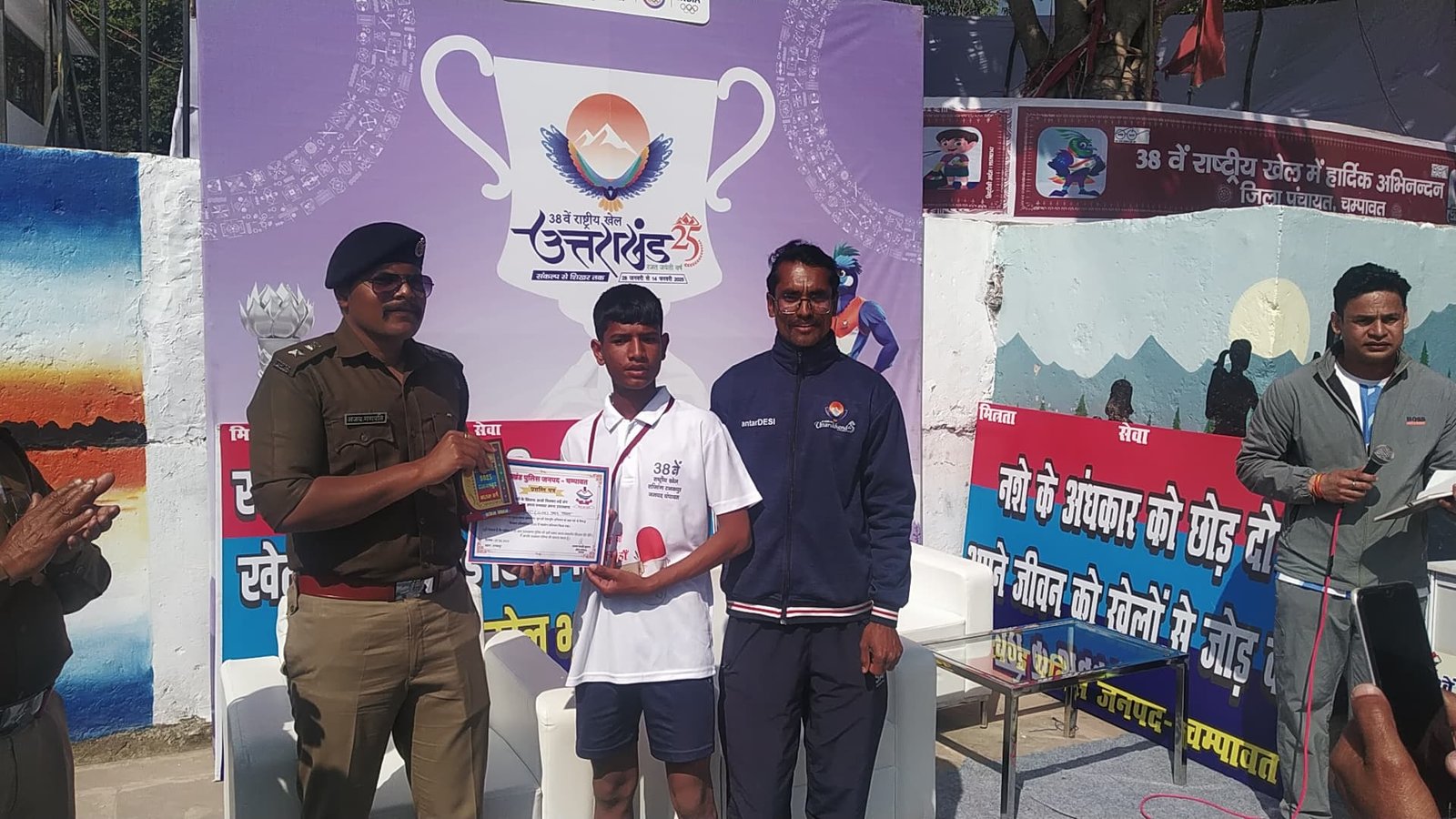टनकपुर/चम्पावत : 38वें राष्ट्रीय खेल के प्रचार प्रसार तथा युवाओं को मादक पदार्थों के दुष्प्रभावों से जागरूक किये जाने के लिए टनकपुर में किया गया मिनी मैराथन का आयोजन, एसपी अजय गणपति ने हरी झण्डी दिखाकर मिनी मैराथन को किया रवाना। जनपद चम्पावत के थाना टनकपुर क्षेत्रान्तर्गत 38वें राष्ट्रीय खेल के प्रचार प्रसार तथा युवाओं को मादक पदार्थों के दुष्प्रभावों से जागरूक किये जाने हेतु स्पोर्टस स्टेडियम टनकपुर से बूम तक में मिनी मैराथन दौड़ का आयोजन किया गया । यह मैराथन दौड़ 02 आयु वर्गों (अंडर 14 बालक /बालिका तथा ओपन वर्ग की बालक बालिका) में आयोजित की गयी।