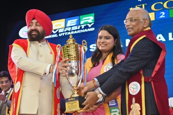 इस अवसर पर राज्यपाल द्वारा विश्वविद्यालय की प्रथम सेठ रोशन लाल जैन ट्रॉफी, सत्र 2021-24 मुस्कान पाण्डेय, दूसरी सेठ रोशन लाल जैन ट्रॉफी, सत्र 2021-23 इशिका शर्मा एवं तीसरी सेठ रोशन लाल जैन ट्रॉफी, सत्र 2022-24 अभिषेक जैन को प्रदान की गई। दीक्षांत समारोह की अध्यक्षता विश्वविद्यालय के कुलसचिव डॉ. मनीष कुमार द्वारा की गई। विश्वविद्यालय के कुलसचिव प्रो. (डॉ.) अंकुश मित्तल ने विश्वविद्यालय की विगत वर्ष की वार्षिक रिपोर्ट का प्रस्तुतीकरण दिया और विश्वविद्यालय की उपलब्धियों से अवगत कराया। इस अवसर पर जिलाधिकारी कर्मेंद्र सिंह, एसएसपी प्रमेंद्र सिंह डोबाल, विश्वविख्यात प्रकाशन हाऊस बी.पी.बी. पब्लिकेशन के प्रबंध निदेशक मनीष जैन, अध्यक्ष जे. सी. जैन, उपाध्यक्ष श्रेयांस जैन, विश्वविद्यालय के संकाय सदस्य एवं छात्र-छात्राएं उपस्थित रहे।