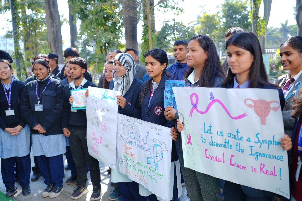 कार्यक्रम की मुख्य आयोजक डाॅ यामिनी कंसल, गाइनी कैंसर विशेषज्ञ, श्री महंत इन्दिरेश अस्पताल ने कहा कि सर्वाकल कैंसर की वजह से होने वाली महिला मौतों का आंकड़ा चैंकाने वाला है। जागरूकता एवं समय पर उपचार बीमारी के रिस्क फैक्टर को कम करने में मददगार हो सकते हैं। उन्होंने 9 से 25 आयुवर्ग की लड़कियों को एपीवी वैक्सीन लगवानी चाहिए। 25 वर्ष से ऊपर आयुवर्ग की महिलाओं को पैप्समेयर और एचपीवी डीएनए की जाॅच करवानी चाहिए। ऐसा करने से सर्वाइकल कैंसर का बचाव किया जा सकता है। इस अवसर पर छात्र-छात्राओं ने पोस्टर एवं स्लोगन के माध्यम से सर्वाइकल कैंसर जागरूकता की अलख जगाई।