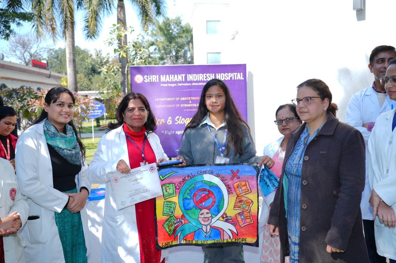 देहरादून। श्री महंत इन्दिरेश अस्पताल की ओर सर्वाइकल कैंसर जागरूकता पर अभियान चलाया गया। सर्वाइकल कैंसर जागरूकता माह (जनवरी) के अवसर पर पोस्टर एवं स्लोगन प्रतियोगिता का आयोजन किया गया। पोस्टर प्रतियोगिता में कनिष्क प्रथम रहे, स्लोगन प्रतियोगिता में ऋतिका नेगी अव्वल रहीं। प्रतियोगिता में श्री गुरु राम राय विश्वविद्यालय के छात्र-छात्राओं ने बढ़चढ़कर भागीदारी की।