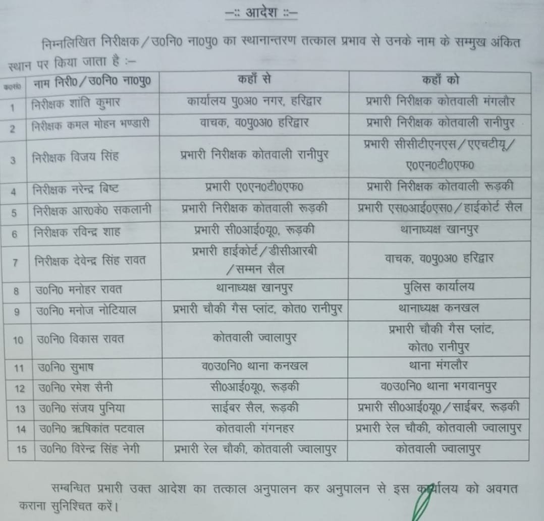 एसएसपी प्रमेन्द्र डोबाल ने 07 निरीक्षक और आठ सब इंस्पेक्टरो के किये स्थानान्तरण, देखें सूचि by zerogroundnews September 5, 2024 written by zerogroundnews September 5, 2024 Share 0FacebookTwitterPinterestWhatsappहरिद्वार : एसएसपी प्रमेन्द्र डोबाल ने 07 निरीक्षक और आठ सब इंस्पेक्टरो के किये स्थानान्तरण, देखें सूचि Share 0 FacebookTwitterPinterestWhatsapp