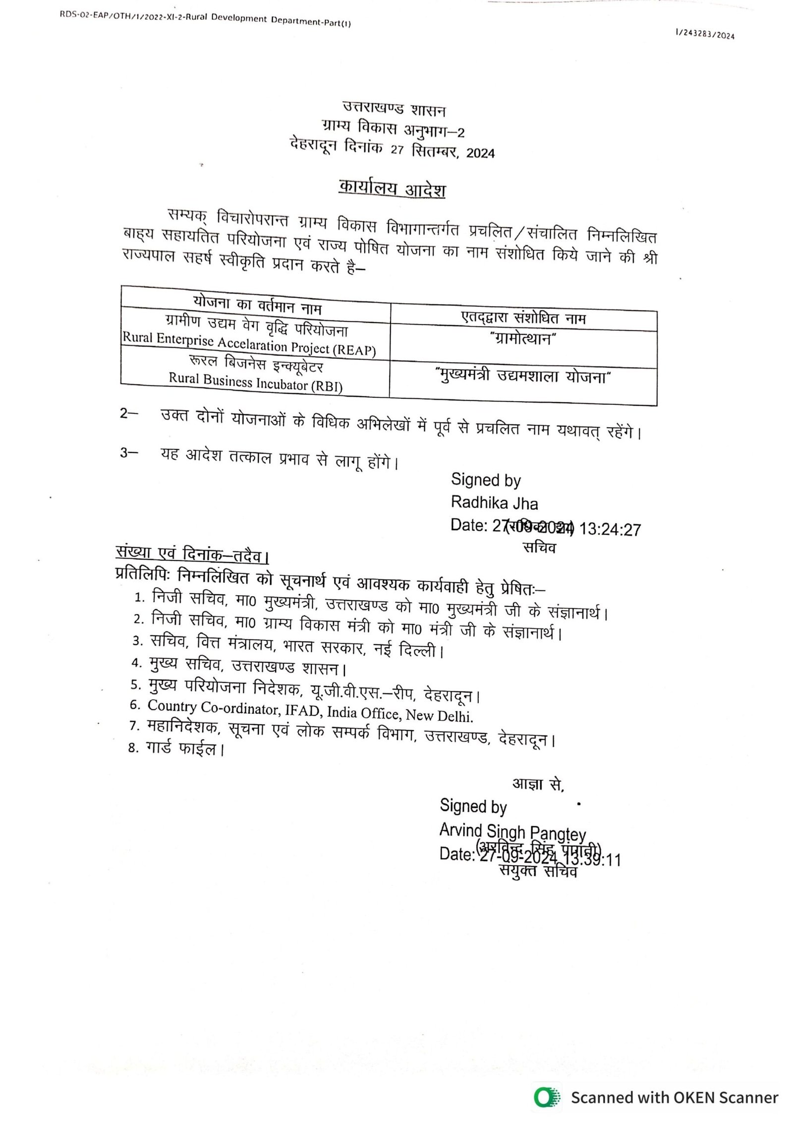 उत्तराखंड सरकार ने ग्राम्य विकास विभाग की 02 योजनाओं के बदले नाम, आदेश जारी