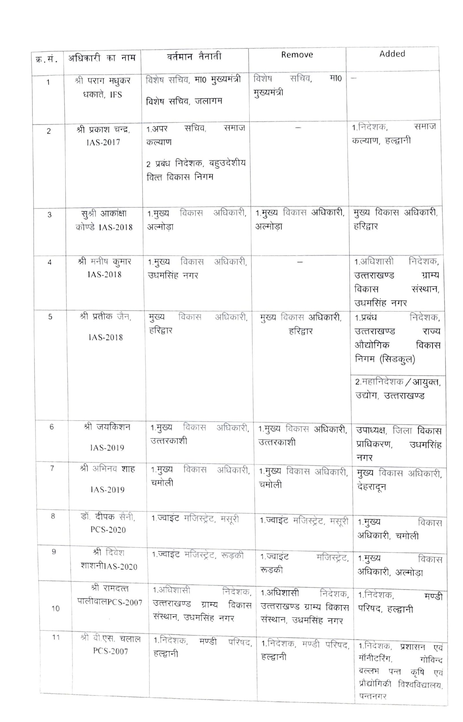 देहरादून : उत्तराखंड शासन ने किये IAS, IFS एवं PCS अधिकारियों के स्थानान्तरण, देहरादून-हरिद्वार सहित कई जिलों के बदले डीएम, देखें सूचि