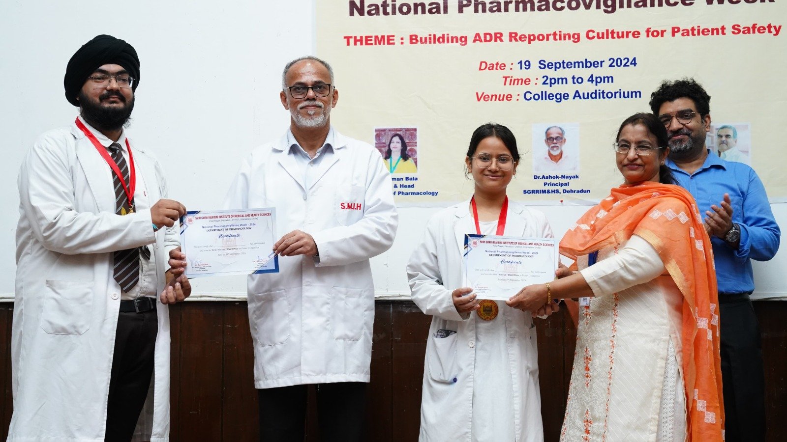 नेशनल फार्माकोविजिलैन्स सप्ताह के अवसर पर एसजीआरआर इंस्टीट्यूट ऑफ मेडिकल एण्ड हैल्थ साइंसेज़ के फार्माकोलाॅजी विभाग की ओर से वाकथाॅन और पोस्टर प्रतियोगिता का आयेाजन किया गया। पोस्टर प्रतियोगिता में ऋषिता रमोला एण्ड ग्रुप अव्वल रहे। एसजीआरआर मेडिकल काॅलेज के प्राचार्य डॉ. अशोक नायक व श्री महंत इन्दिरेश अस्पताल के मुख्य चिकित्सा अधीक्षक डॉ. उत्कर्ष शर्मा ने हरी झण्डी दिखाकर रैली को रवाना किया। मेडिकल छात्र-छात्राओं ने मेडिकल काॅलेज परिसर के फार्माकोलाॅजी विभाग से श्री महंत इन्दिरेश अस्पताल तक रैली निकालकर जनजागरूकता का संदेश दिया। कार्यक्रम को सफल बनाने में फार्माकोलाॅजी विभाग की विभागाध्यक्ष डॉ. सुमन बाला, डॉ. हेनरी जेम्स, डॉ. शालू बावा, डॉ. कविता, डॉ. छवि, डॉ. श्रुति, डॉ. सचिन, डॉ. बिग्नेश, डॉ. अर्चना, राजीव वसी आदि का विशेष सहयोग रहा।