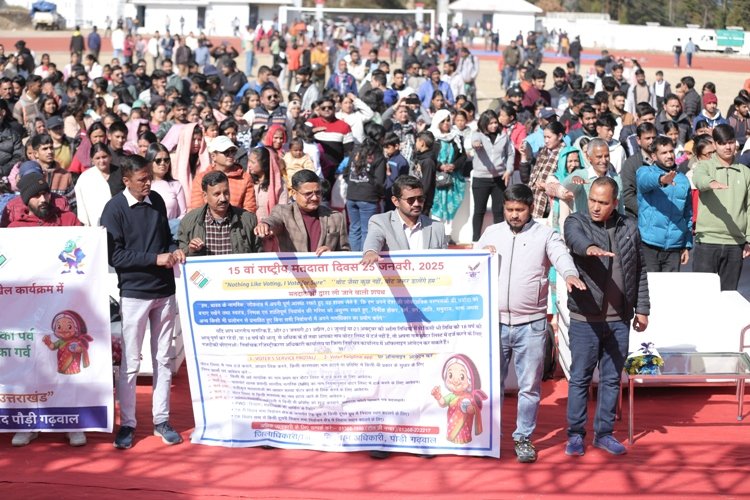 पौड़ी : 38वें राष्ट्रीय खेल के शुभंकर मौली व मशाल तेजस्विनी मुख्यालय पौड़ी पहुंचने पर भव्य स्वागत किया गया। इस दौरान शहर में मौली व मशाल की रैली के साथ-साथ मतदाता जन जागरुकता रैली भी निकाली गई। जिला निर्वाचन अधिकारी व जिलाधिकारी डॉ. आशीष चौहान ने एजेंसी चौक से मतदाता रैली को रवाना किया। इस दौरान मतदाता जन जागरूकता रैली एजेंसी चौक से बस अड्डा, धारा रोड़, अपर बाजार से रांसी स्टेडियम पहुंची। रैली में शामिल विभिन्न विभागों के अधिकारी, स्कूली छात्र-छात्राएं व स्थानीय लोगों ने आने वाले चुनावों में अधिक से अधिक मतदान हो इसके लिए लोगों को जागरूक किया। जिला निर्वाचन अधिकारी ने रांसी स्टेडियम में निर्वाचन विभाग के तत्वाधान में सभी निर्वाचनों के साथ ही आगामी चुनावों में अपने मतदान का उपयोग करने की शपथ दिलाई। उन्होंने कहा कि आगामी चुनावों में अधिक से अधिक मतदान हो इसके लिए स्वयं व अन्य लोगों को भी जागरूक करें।