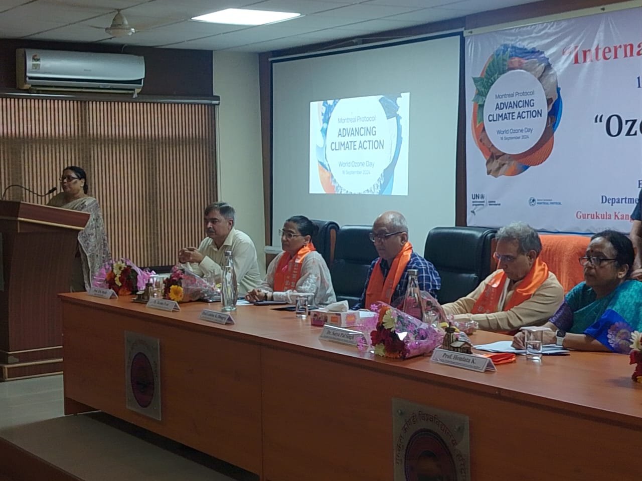 कार्यशाला के मुख्य वक्ता श्रीदेव सुमन विश्वविद्यालय के संकायाध्यक्ष एवं वनस्पति विज्ञान विभाग के प्रो. गुलशन ढींगरा ने विस्तार से इस बारे में जानकारी देते हुए प्रेजेंटेशन के माध्यम से प्रस्तुतीकरण प्रस्तुत कर लोगों से इस बारे में सजग रहने का आह्वान किया। उन्होंने कहा कि यदि समय रहते हम सजग नहीं हुए तो तेजी से घटती ओजोन परत के चलते होने वाले नुकसान की पूर्ति होना बहुत हद तक असंभव होगा। उन्होंने कहा कि हमें अपने आस पास के क्षेत्रों में सफाई तथा आधुनिक जीवन में उपयोगी संसाधनो जैसे अत्यधिक वाहनों के प्रयोग व एसी के प्रयोग पर अंकुश लगाना होगा। जिससे की कुछ हद तक इनसे निकलने वाली दूषित वायु के प्रभाव से बचा जा सके। ओजोन परत हमारी पृथ्वी और मानव की सुरक्षा कवच है। इसका घटता आकार गम्भीर चिंता का विषय है। इसको संरक्षित करने का सबसे सरल उपाय पौधे लगाना है। इसलिए हम सभी अधिक से अधिक छायादार बृक्ष लगाएं।